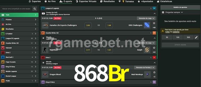 A aposta 868Br oferece aos jogadores a experiência mais conveniente de apostas em eSports!